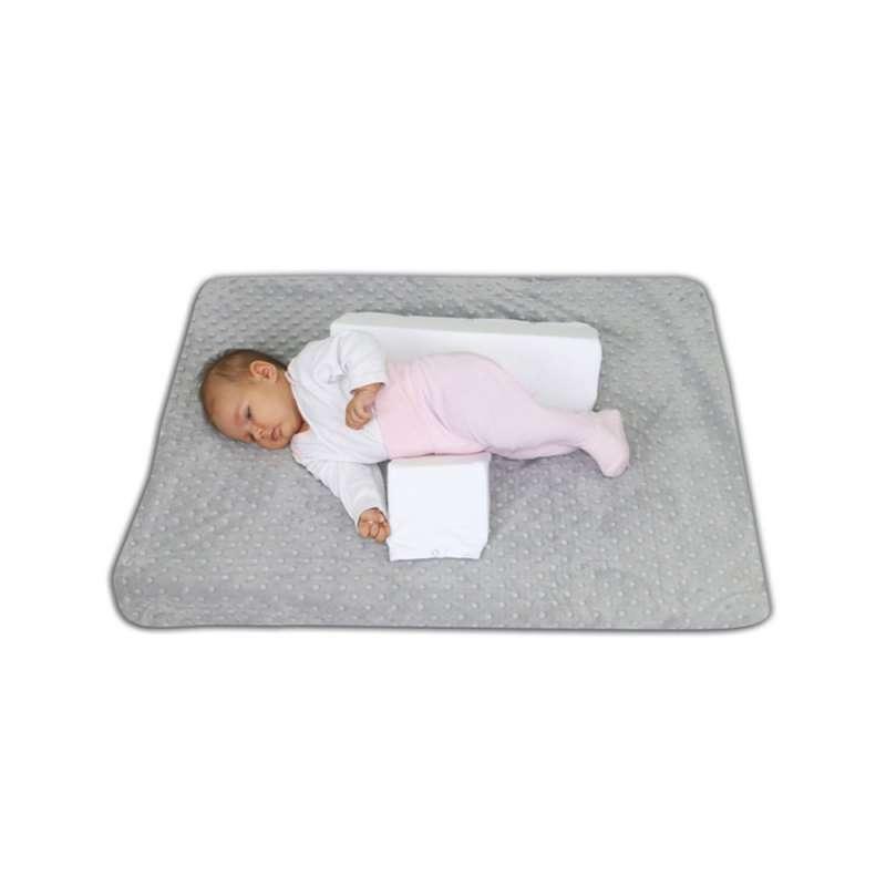 Bočni pozicioner je posebno dizajniran da drži bebe udobno i sigurno na boku. Sprečava da se bebe prevrću dok spavaju, a istovremeno omogućava slobodu kretanja. Kako biste naizmenično mijenjali stranu na kojoj beba leži, bočni pozicioner se mora okrenuti tako da je veća strana uvijek na bebinim leđima. Lagan, praktičan i lak za nošenje, bočni pozicioner se može koristiti svuda (u kolicima, krevetima, kolijevkama, dječjim krevetićima itd.).