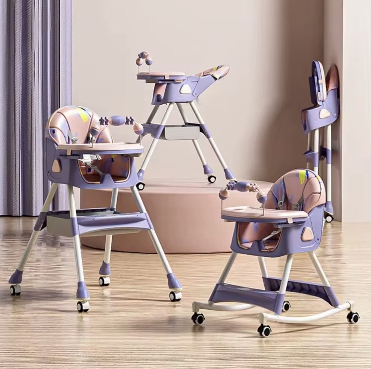Može se transformisati u manju stolicu, takođe ima mehanizam za ljuljanje