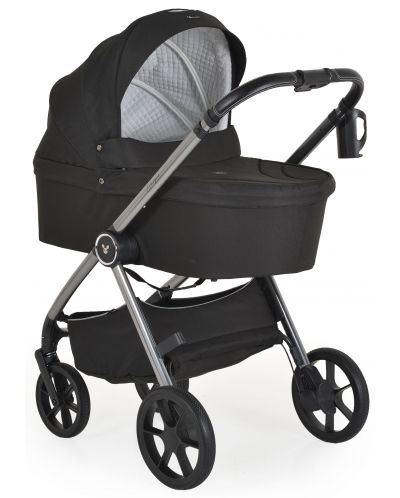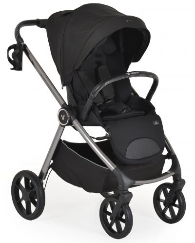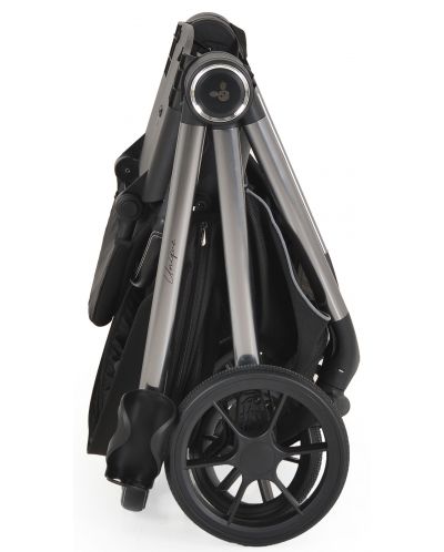 Šasija je lagana i aluminijska te ima PVD premaz otporan na habanje i memorijske gumbe, što olakšava promjenu različitih dijelova. Može se sklopiti zajedno sa sjedalom i ima praktičnu ručku za nošenje. Prednje PU gume mogu se rotirati za 360° ili zaključati u smjeru naprijed, a stražnji kotači imaju spojenu kočnicu. Svi kotači imaju amortizere i gumb za njihovo uklanjanje. Prtljažnik je dovoljno velik da u njega stane sve vaše kupnje ili pribor koji vam je potreban za šetnju. Imaju i reflektirajuće trake koje svijetle u mraku.