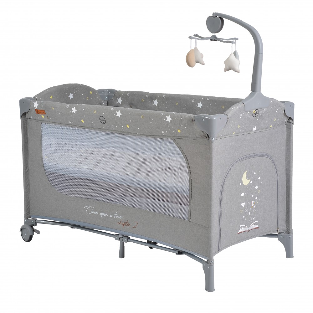 Sklopivo igralište. Pogodno za kućnu upotrebu i na putovanjima. Zauzima minimalno prostora i lako se prenosi. Pogodno za bebe od 0+ mjeseci starosti i maksimalne težine i visine – 15 kg i do 90 cm. Optimalno osiguran 2. sloj pogodan za spavanje, namijenjen bebama između 0 i 6 mjeseci; Glazbeni mobil s 4 igračke; S velikim bočnim džepom za igračke; Visokokvalitetna lanena tkanina s printom bajki; Bočni ulaz s patentnim zatvaračem koji vašoj bebi omogućuje ulaz i izlaz iz igrališta prilikom puzanja. Uključeno u set: Torba za nošenje, Sklopivi madrac debljine – 1,5 cm.